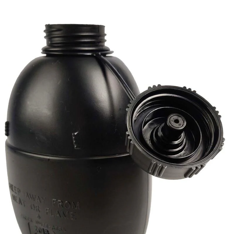 Osprey construct these canteens out of a durable plastic material. This is a tough bugger that would take a lot of force to split or crack. The lid is tethered on though it can be un-tethered if required (some may be missing this tether attachment). All used hydration components are display/prop/collectable only and not for consumption use.