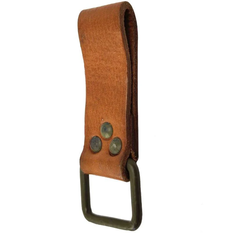 A genuine belt loop from the Czechoslovakian Army to match any potential Czech belts and suspenders you may have lying around. If you don't happen to own one, do not fret, you can slide this leather keeper over any belt less than 4cm in width. The loop is riveted together so you'll have to slide it on and off your belt. This creates a secure point of attachment to connect your suspenders to your belt.